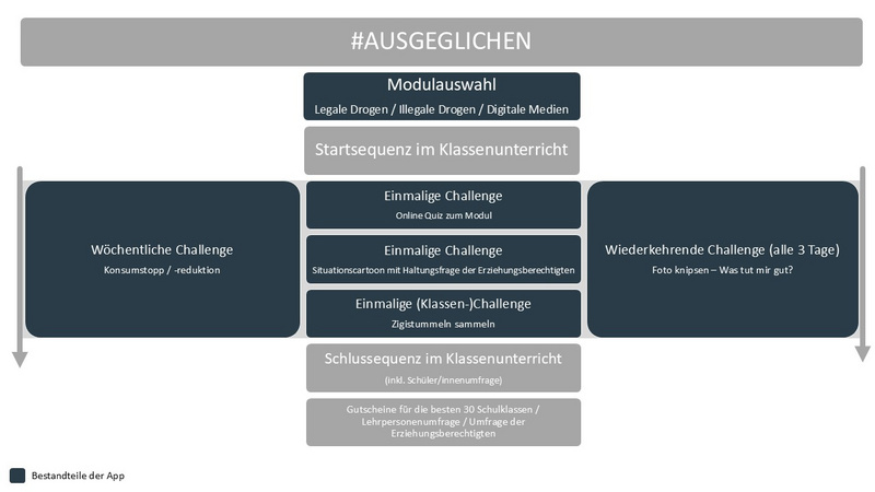 - Wöchentliche Challenge: Teilnahme am wöchentlichen Konsumstopp (Drogen) oder der Konsumreduktion (Digitale Medien)