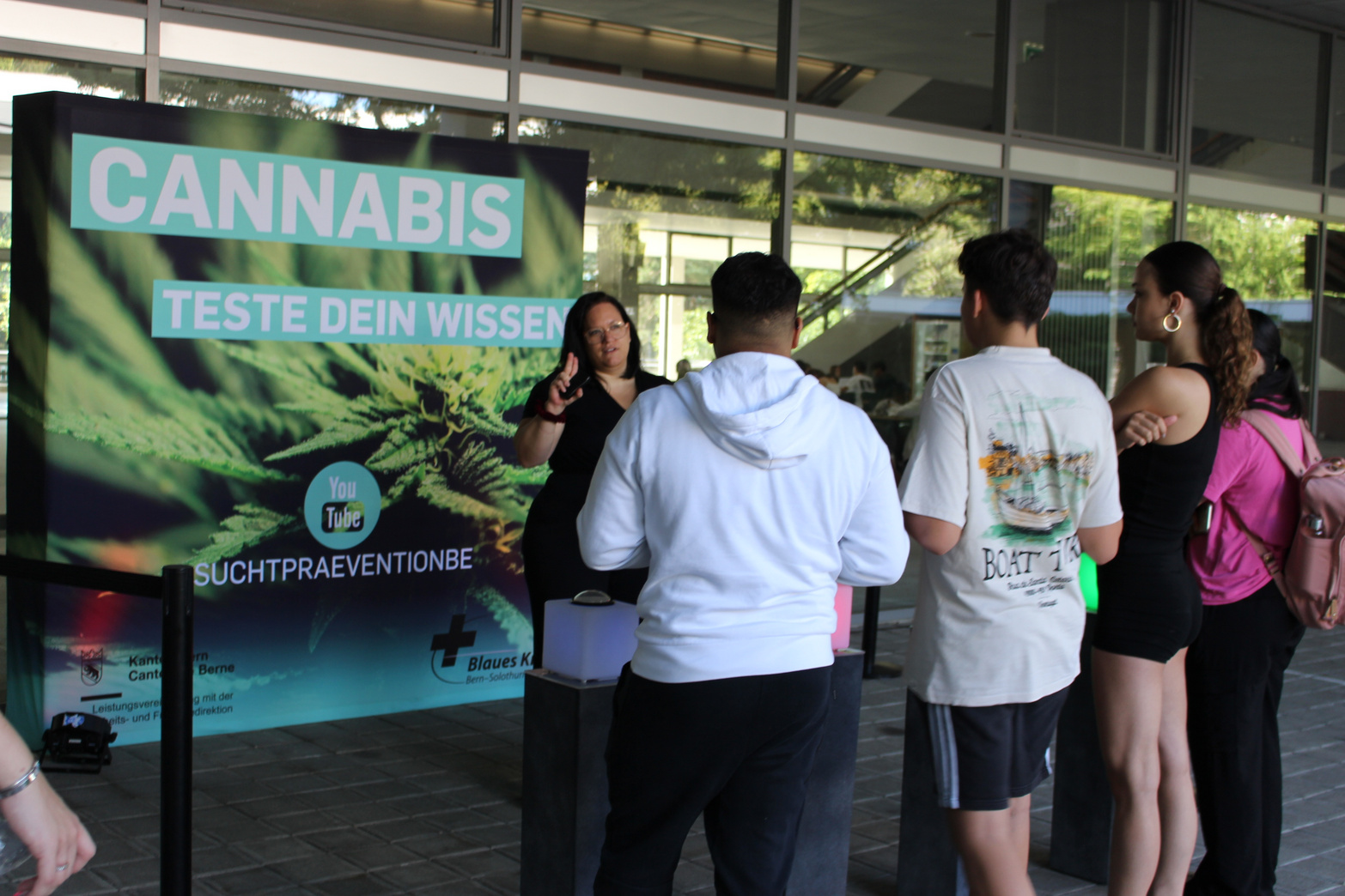 Die Gesundheitsaktion hatte das Ziel, die Schülerinnen und Schüler zu Alkohol-, Nikotin- und Cannabisthemen zu sensibilisieren. Während einem ganzen Tag konnten Interessierte an insgesamt vier interaktiven Aktionsständen teilnehmen. Weiter bestand die Möglichkeit, eine anonyme schriftliche Rückmeldung zu Gesundheitsfragen auszufüllen. 154 Personen machten davon Gebrauch. Das Durchschnittsalter der Befragten lag bei etwas mehr als 16 Jahren.