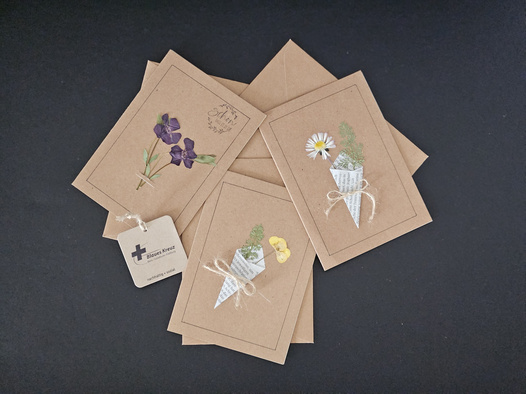 Mit unseren handgemachten Geschenkkarten, welche mit getrockneten Blumen und Gräsern aus unserem eigenen Garten verziert sind, hast du für verschiedenste Situationen ein liebevoll gefertigtes Präsent. Ob du die Karte selbst mit deiner Nachricht füllst oder zum Weiterschenken leer lässt - der Empfänger oder die Empfängerin wird sich bestimmt freuen!
