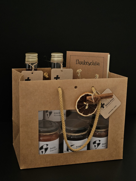 - Geschenktaschen aus Naturpapier mit individuell zusammenstellbarem Inhalt