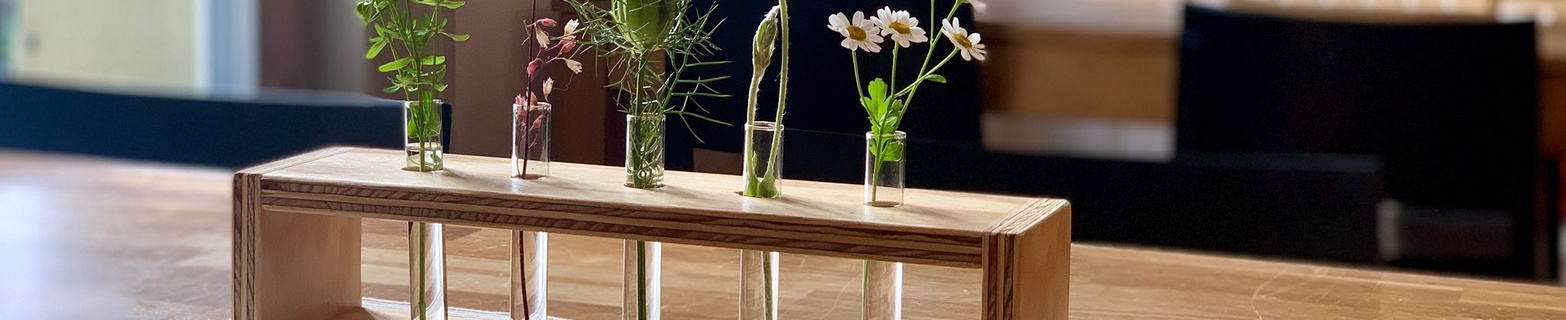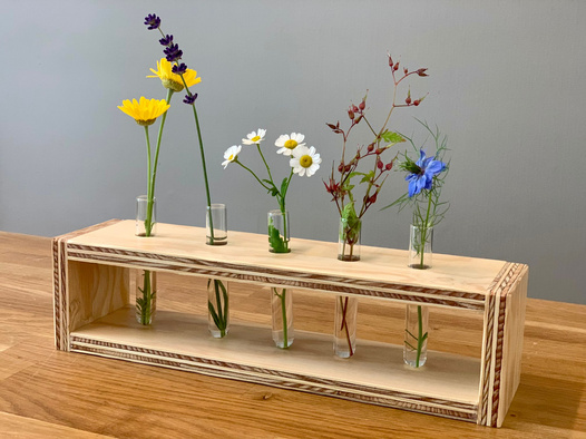 Unsere handgemachte Tischdeko gibt deinem Tisch den perfekten Farbtupfer und kann je nach Jahreszeit, Lust und Laune angepasst werden, indem du den Inhalt der Reagenzgläser wechselst!